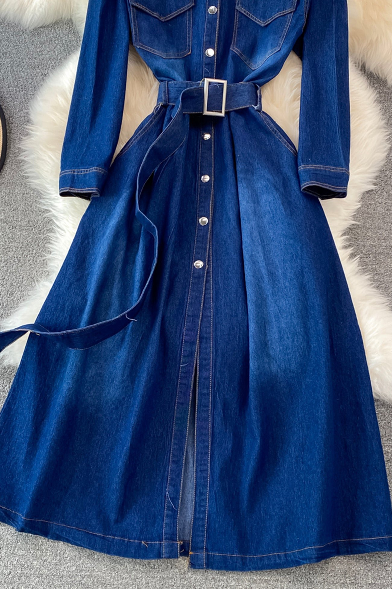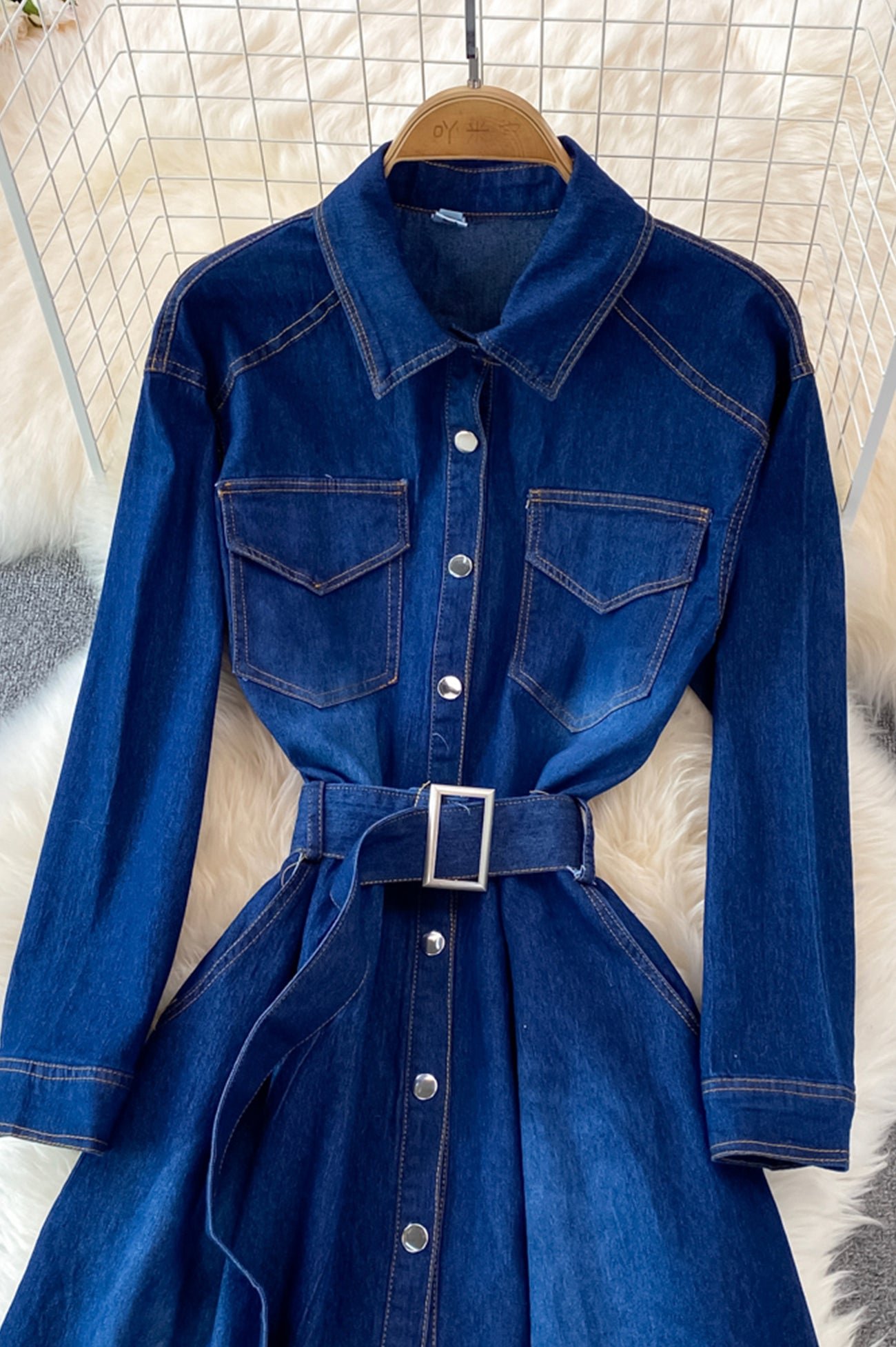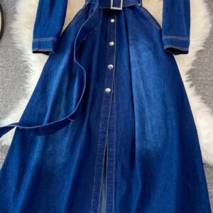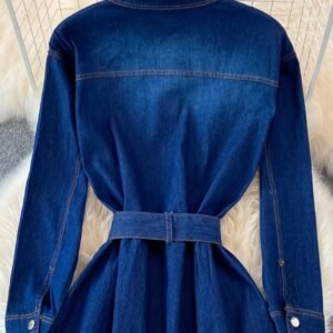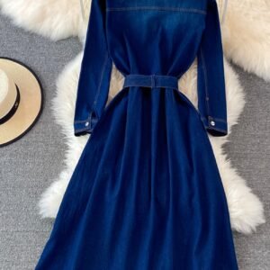 Blue A-line Long Sleeve Denim Dress