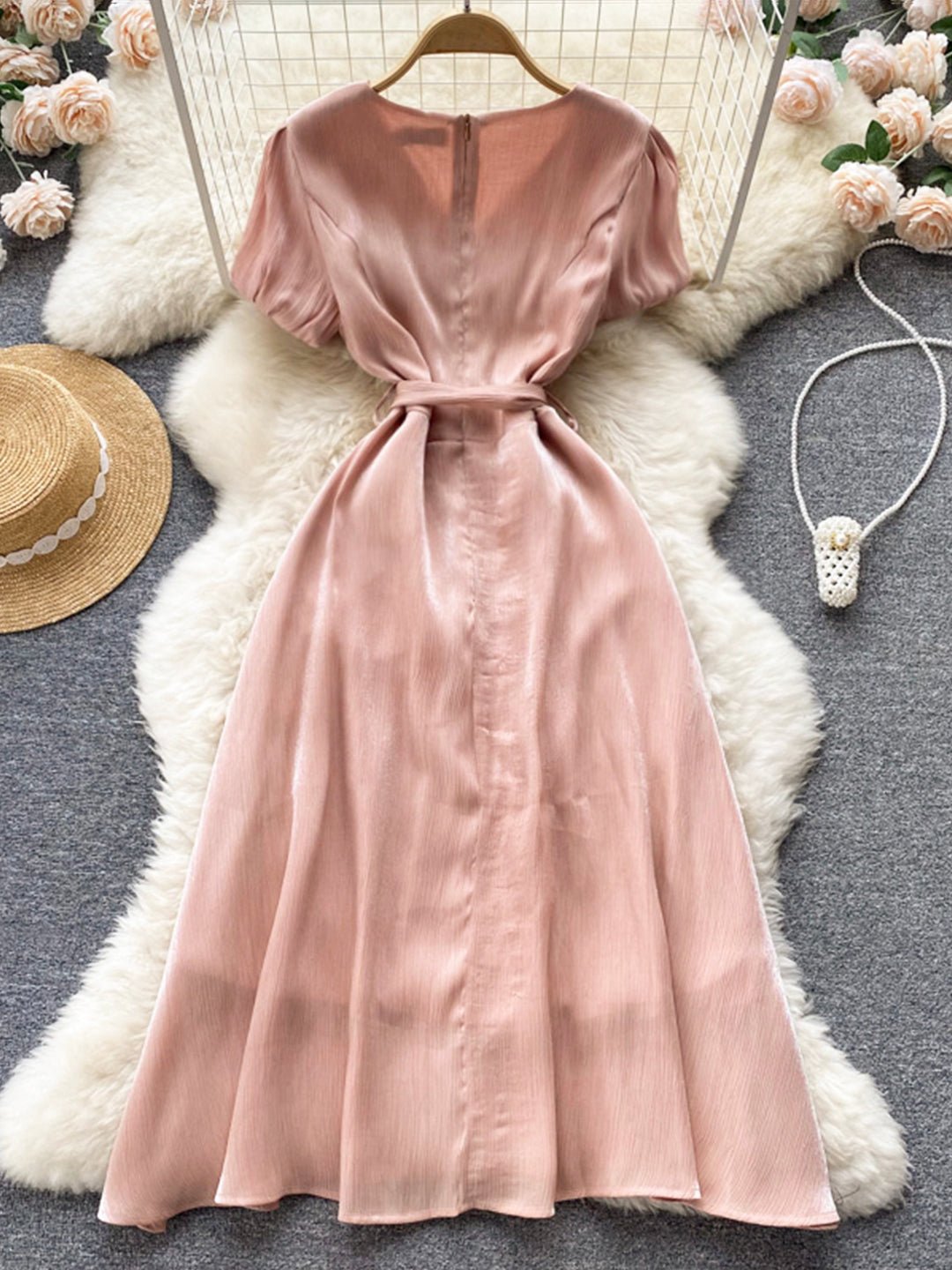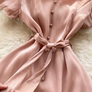 Pink V-Neck Short Sleeve Dress, Fashion Dress